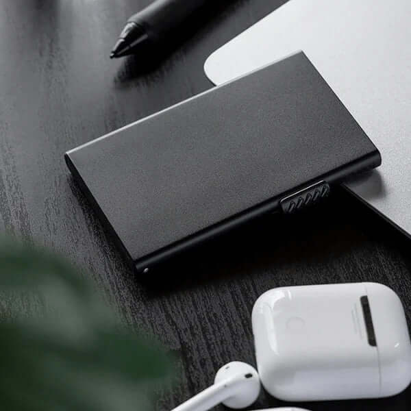 A carcaça de alumínio protege seus cartões de aproximações indesejadas, mantendo sua propriedade privada segura.