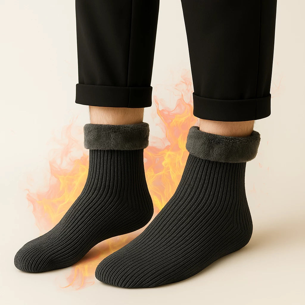 Cada meia é forrada com material flanelado interno, garantindo isolamento térmico eficiente.