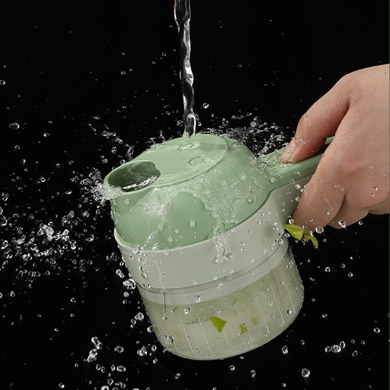 Com ele você pode ter um cortador de vegetais, picador de carne e ainda uma escova de limpeza elétrica ao mesmo tempo, apenas trocando os acessórios do conjunto multifuncional.